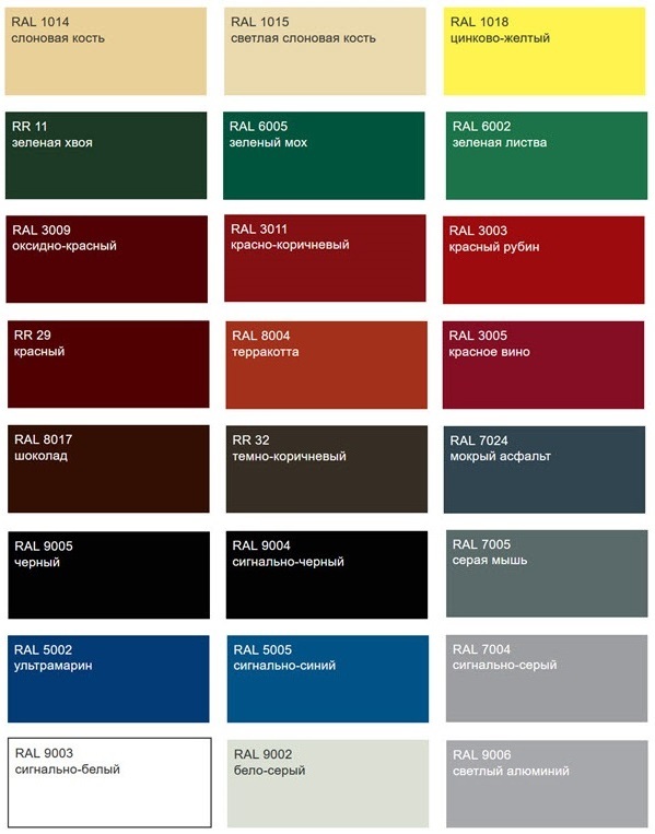 Приклади найпоширеніших кольорів палітри, які найчастіше обирають люди для своїх об'єктів